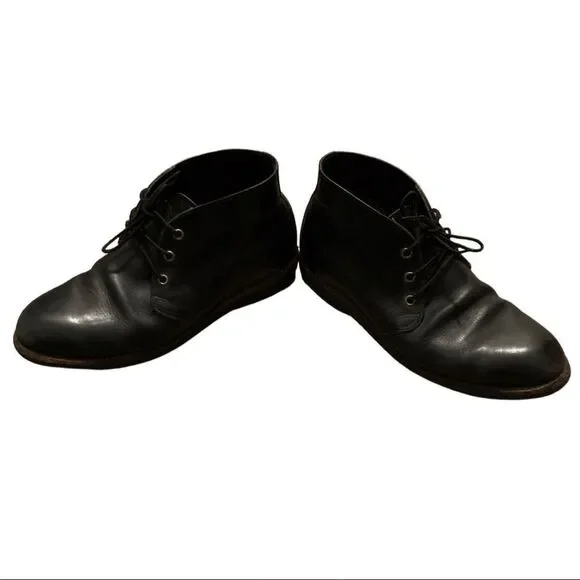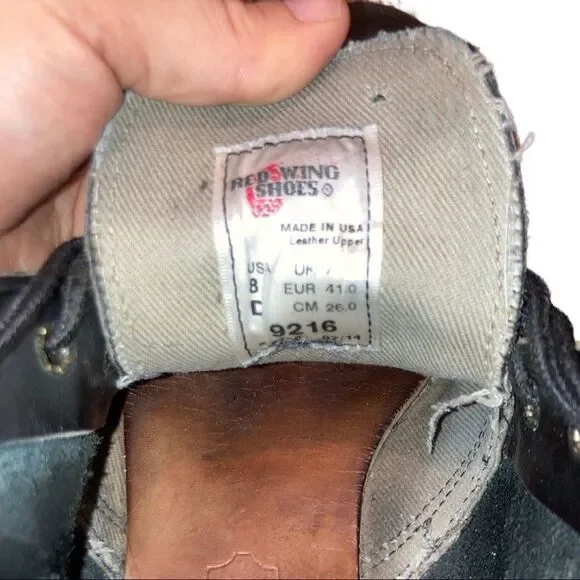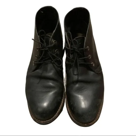 RED WING 9216 HERITAGE WORK FOREMAN CHUKKA 8 DEnter the legendary realm of Red Wing this season with the brand’s iconic 9216 Foreman Chukka, realised here from black harness leather. Crafted in the USA, this working silhouette evolves through modern light with an updated neoprene outsole; providing this pair with their cushioned persona, along with the brand’s durable Goodyear welt construction riding underfoot.Black Harness LeatherLeather InsoleHiking LacesGoodyear WeltNeoprene OutsoleOil Resistant Made in USACondition: Preloved. Creasing to leather throughout. Still lot of life left and Good used condition. See pictures for further condition.Open to Offers. I will either counter or accept.Comment with questions or to ask for additional photos of product.Bundle And Save, Look at My Storefront for Discounts.