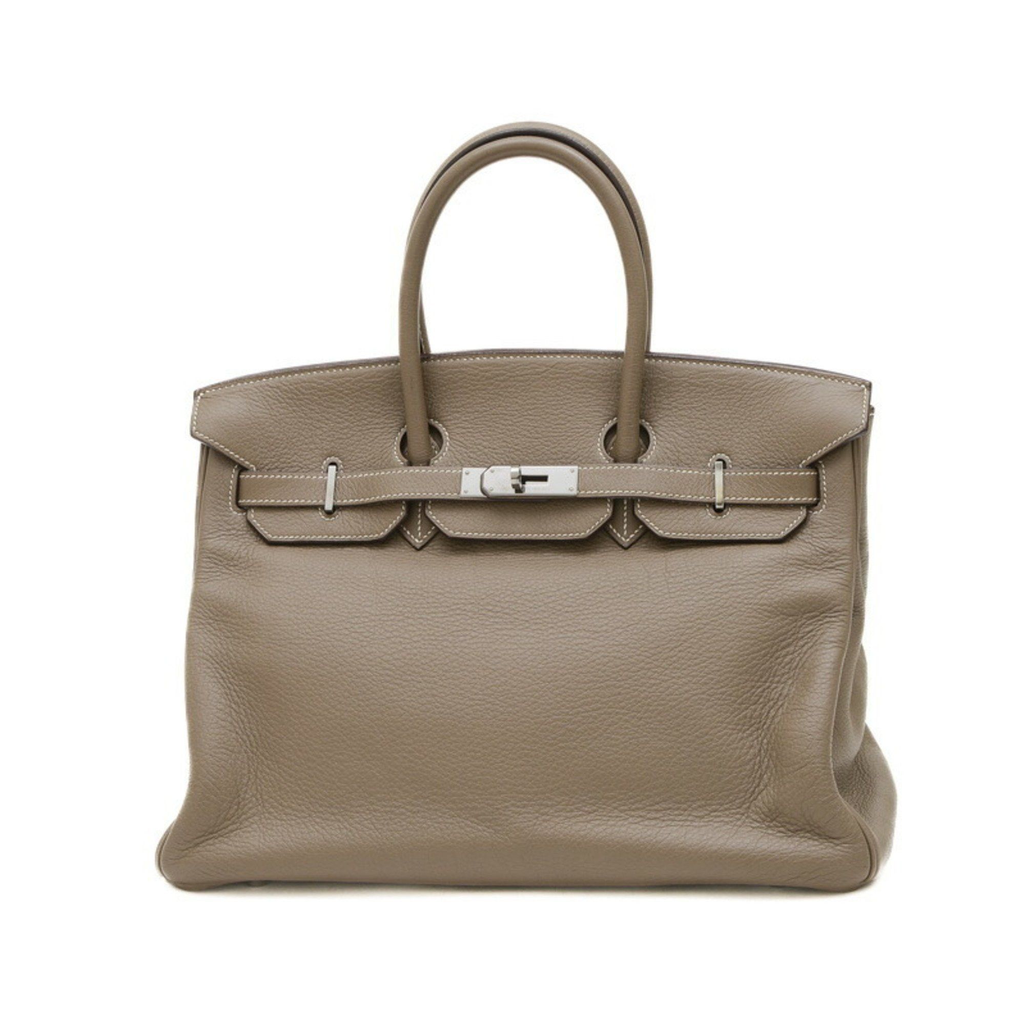 Hermes Birkin 35 handbag, Taurillon etoupe, ruthenium hardware, I stamp / Brand : Hermes Type : Handbag Material Fashion : Taurillon clemence leather Color Cases : Etoupe gray Gender : Men,Women Size Hxwxd Cm : 27cm x 35cm x 20cm / 10.62'' x 13.77'' x 7.87'' Width Cm : 35 Depth Cm : 20 Accessories : Clochette, Dust bag, Key, Padlock Accessories Notice : Before purchasing, please refer to the images of the accessories included with the item. Condition : Used (very good) Condition : Rank A Used - A few traces of usage, some scratches / dirt can be seen but overall in very good condition Condition : Rank A Damage Ranking : Overall Misshapen Slight Condition Notice : Before purchasing, please refer to the images for the exact condition of the item. sku : GZl161s4 / Please kindly understand that import duties and charges are not included in the item price and these additional charges are the buyer's responsibility. It seems that packages are being inspected randomly and the custom charges are accordingly. Please check with your country's customs office to determine what the additional costs might be prior to buying.